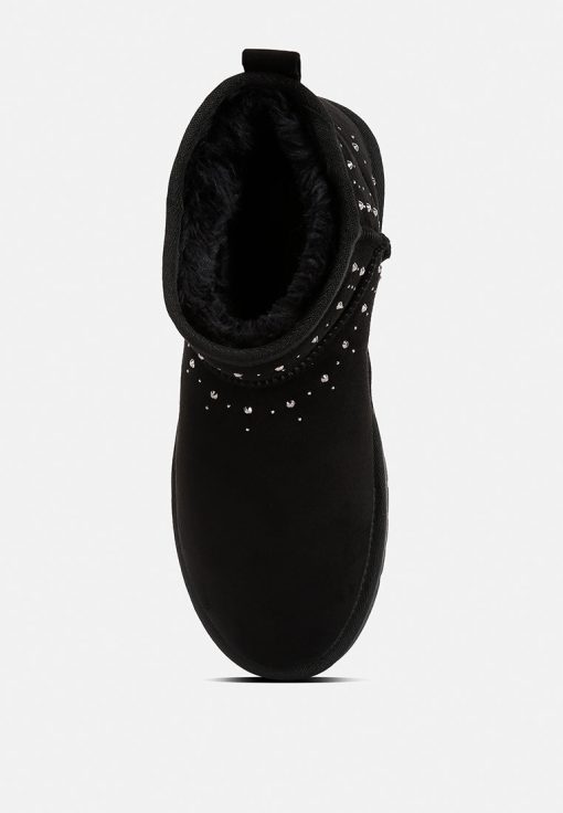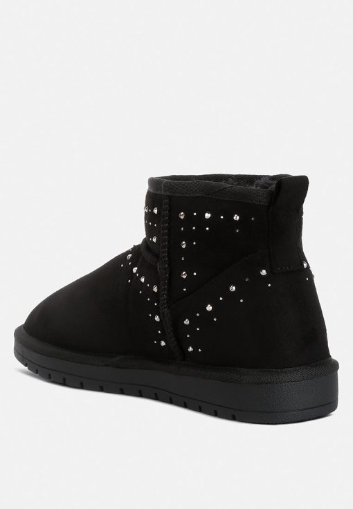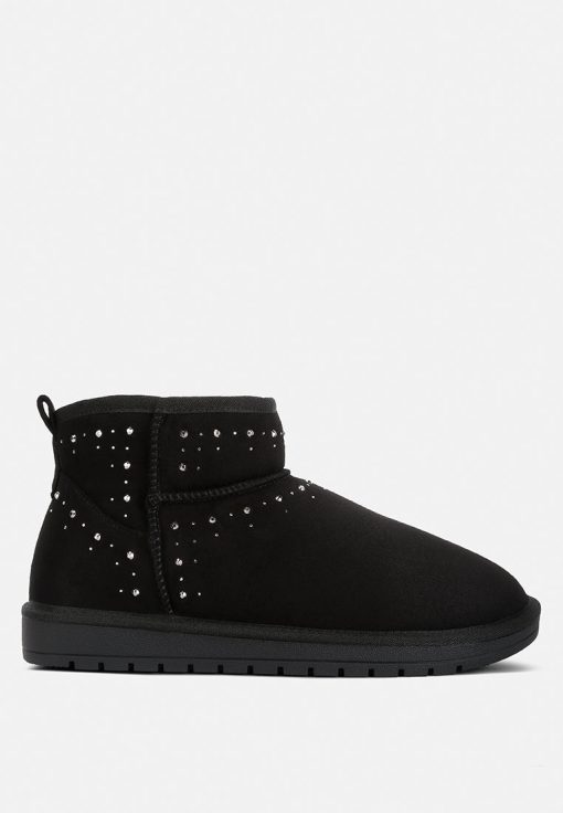 Add a touch of nostalgia and comfort to your shoe collection this year. These rhinestone embellsiehd ankle length boots are trendy, perfectly Y2K, functional for all of your outfits. The best way to dress these up would be with a laced cami and mini skirt in classic 2000s style!