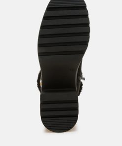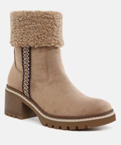 The snow boots with the thick fur collar are sure to give a cozy fit. The embroidery details elevates the design of the boots and give them an intriguing visual aesthetic. The block heels and comfortable cushion insoles give a relaxed fit.